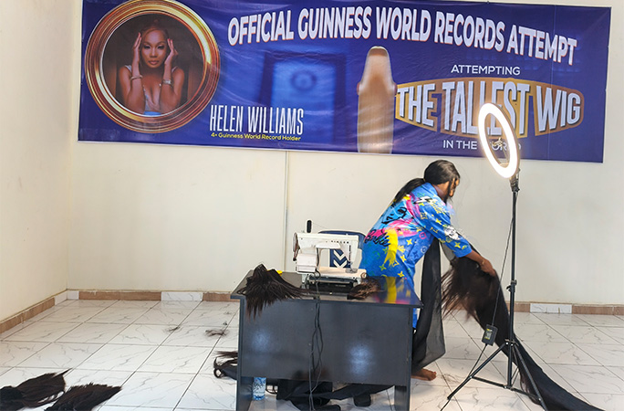 Nigerian woman sets Guinness World Record with 15.37-metre-tall wig